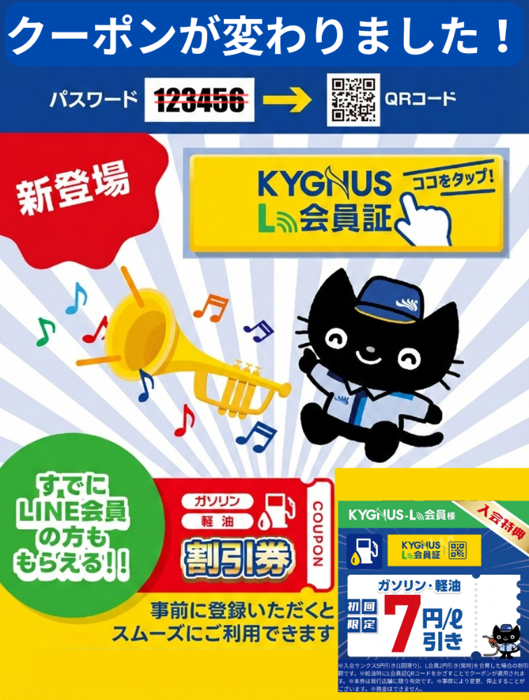 LINE会員様にガソリン値引きのクーポン配信中!!お得な情報もいち早くお届け!!